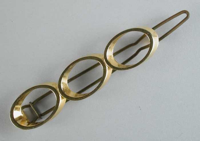 Haarschuif, drie goudkleurige opengewerkte ovale met...
