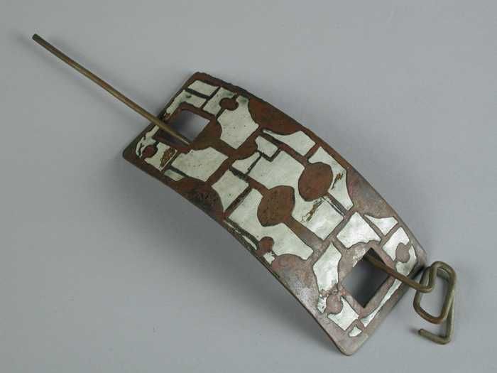 Haarspeld, niervormig blad (1) van geslagen koper me...