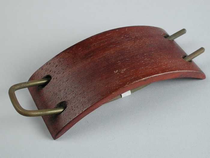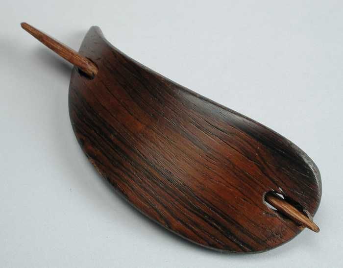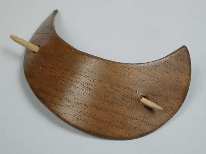 Haarspeld van hout, gebogen halve-maan (1) met stokj...