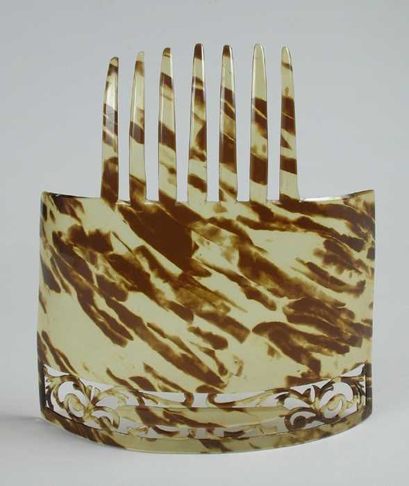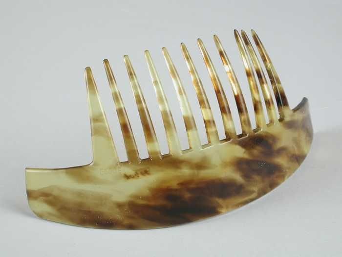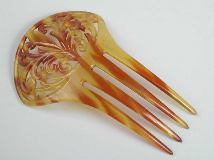 Sierkam van geel-bruin gevlamd celluloid met golvend...