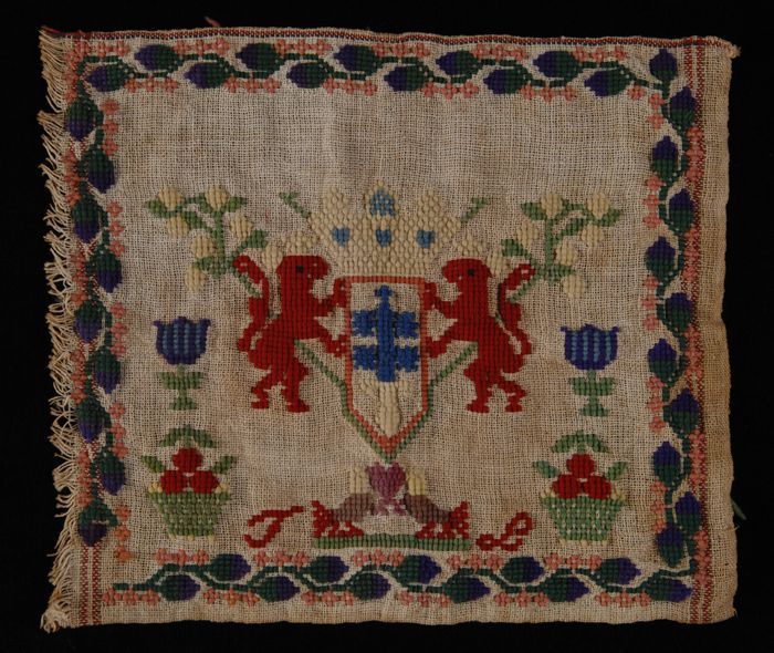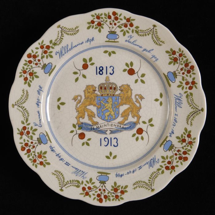 Wit wandbord met meerkleurig wapen met leeuwen en bl...