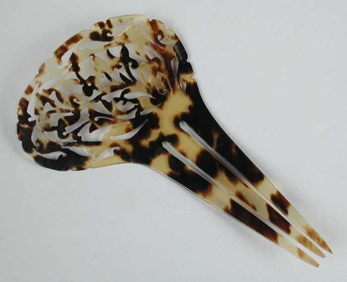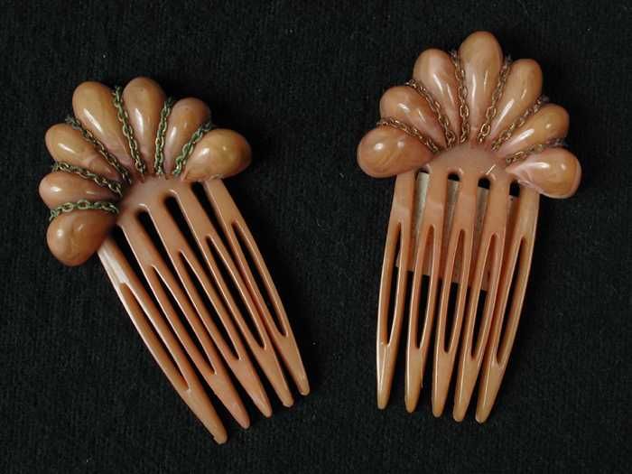 Paar kleine insteekkammen, sierkam van leverkleurig ...