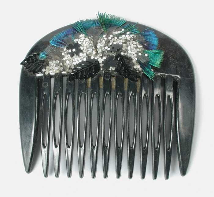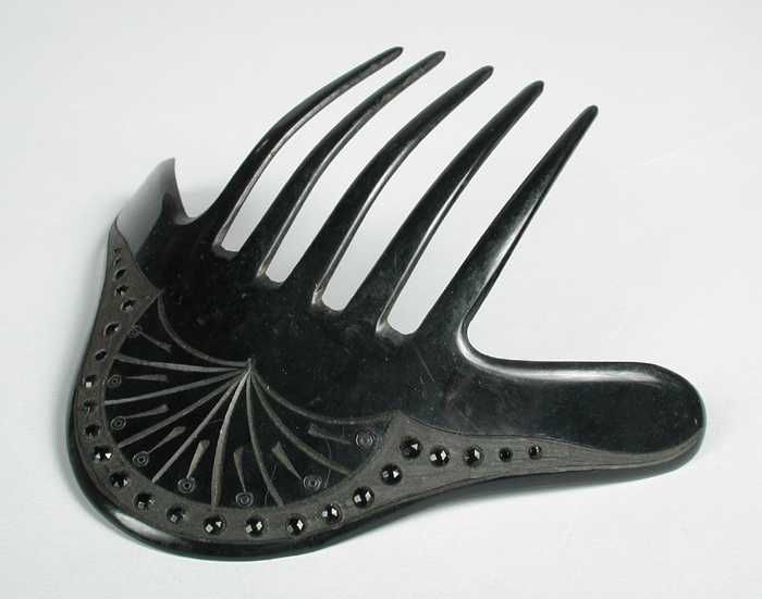 Sierkam van zwart kunststof met waaiervormig reliëf ...
