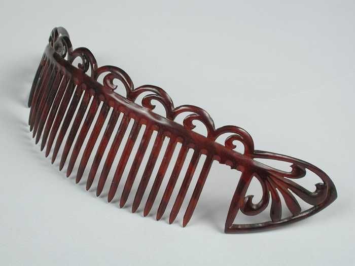 Brede sierkam van roodbruin kunststof met uitgesnede...