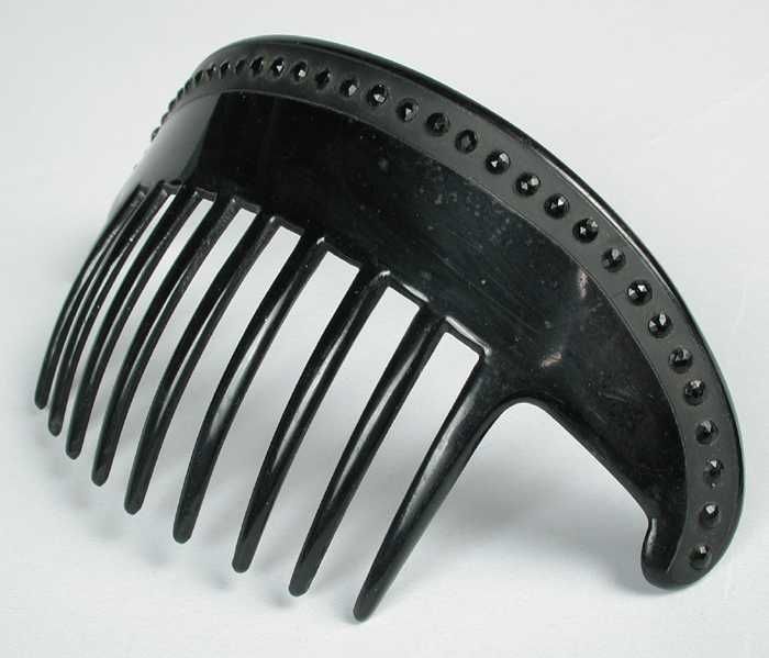 Sierkam van zwart kunststof met facet-nopjes langs d...