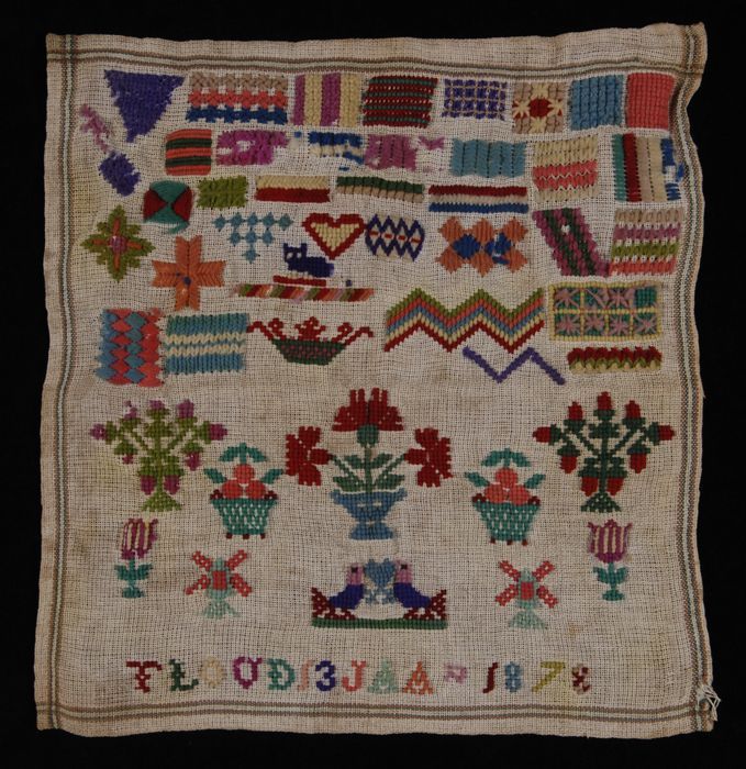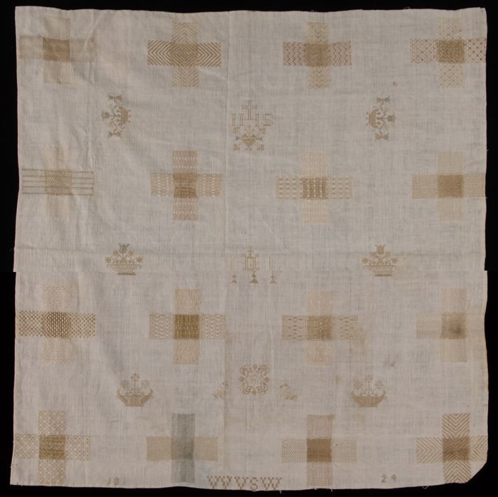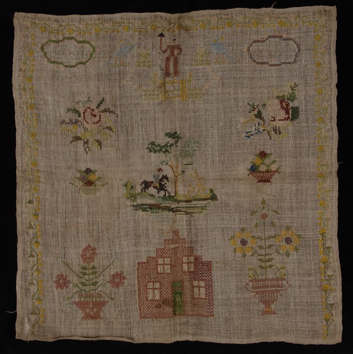 Wit wandbord met meerkleurige kroon, vlaggen en "W" ...