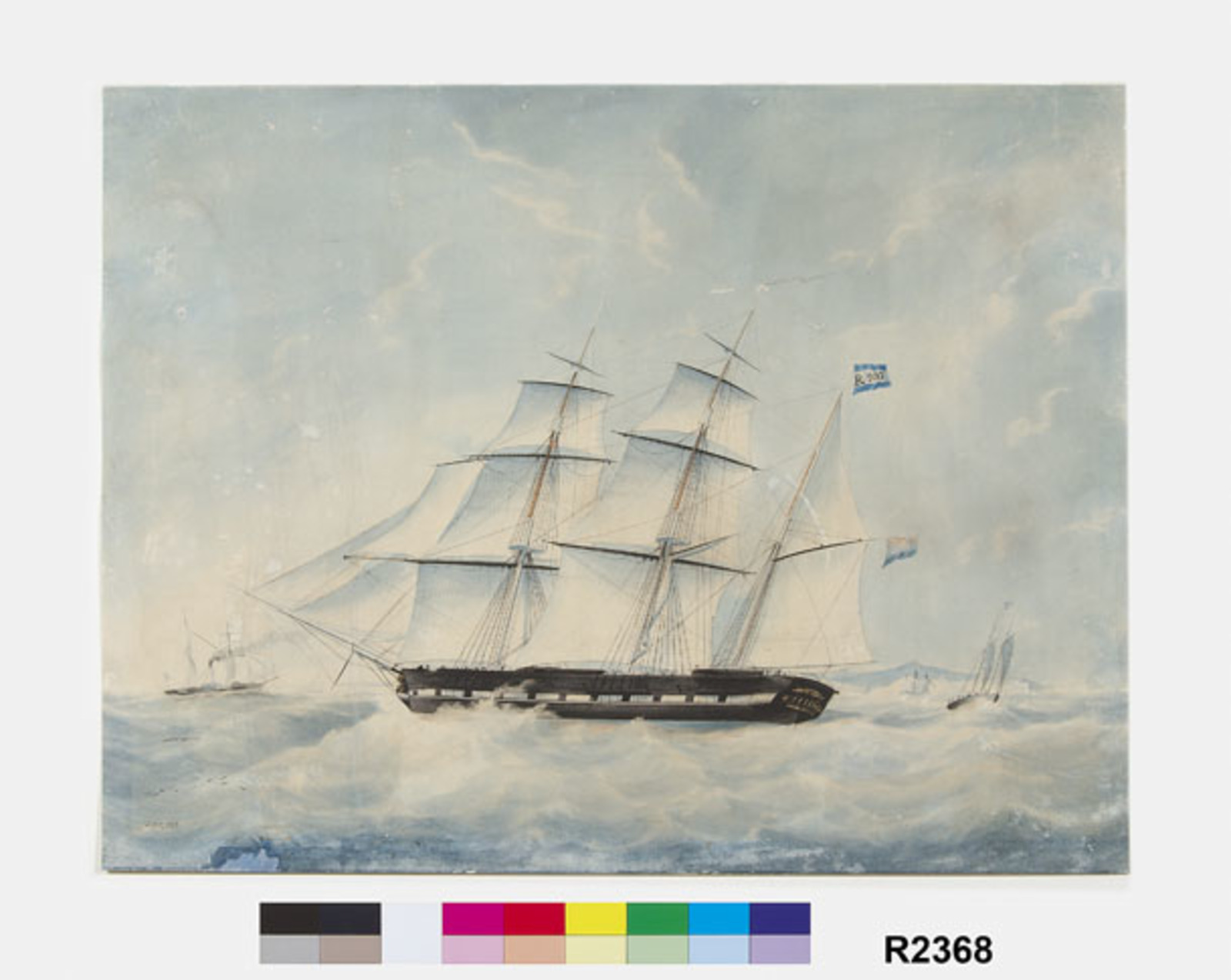 Schip met collegevlag, het barkschip Vrouwe Johanna ...