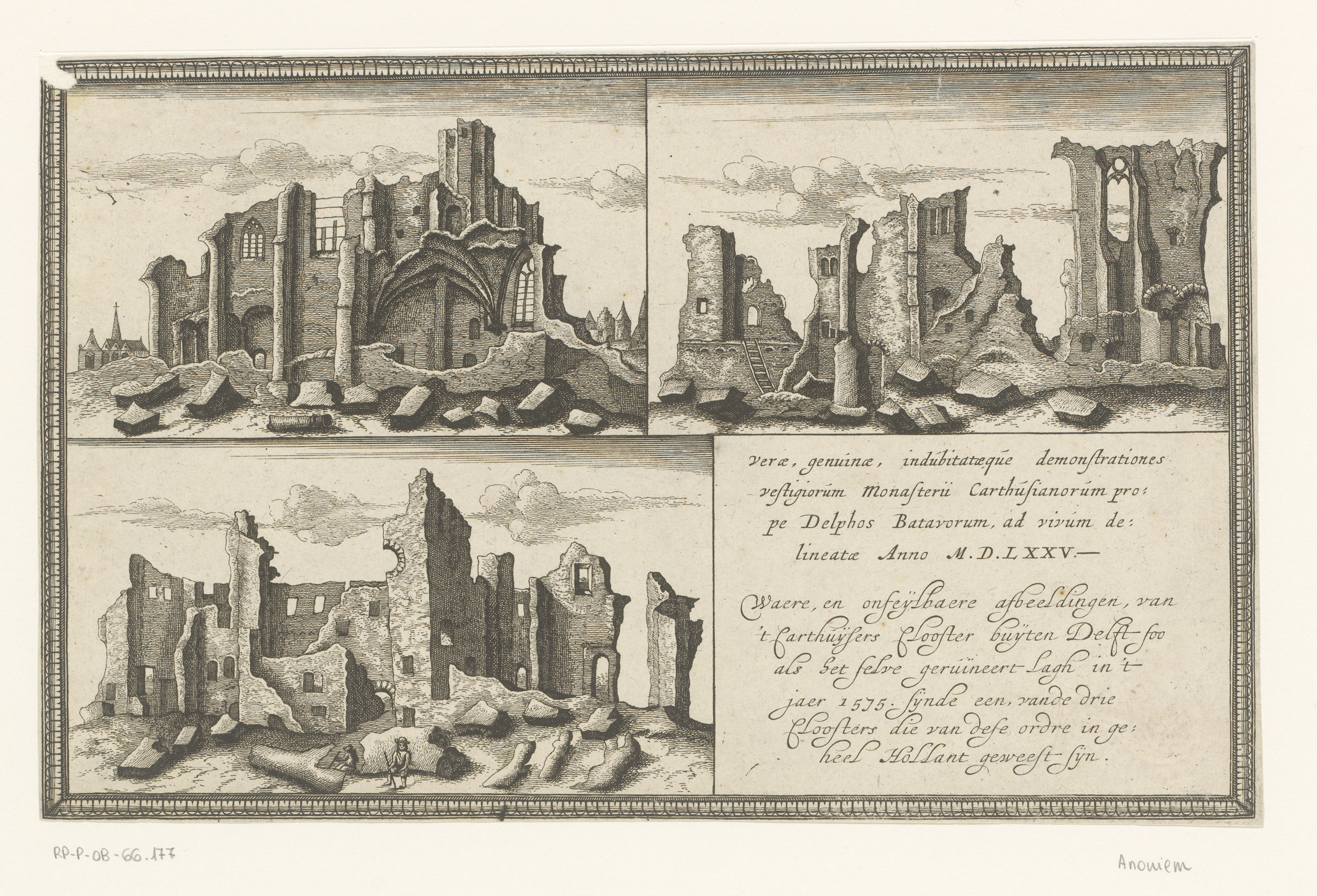 Gezicht op de ruïne van het Kartuizerklooster te Delft