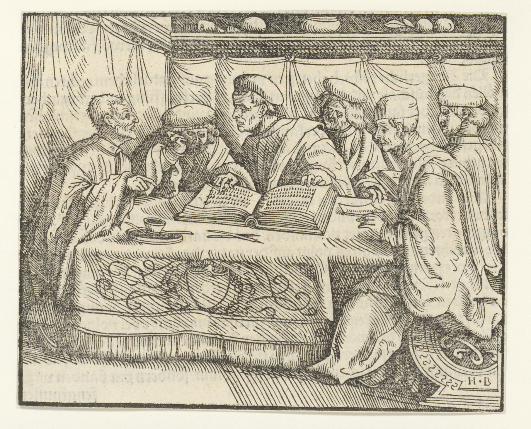 Mannen om een tafel met daarop een boek