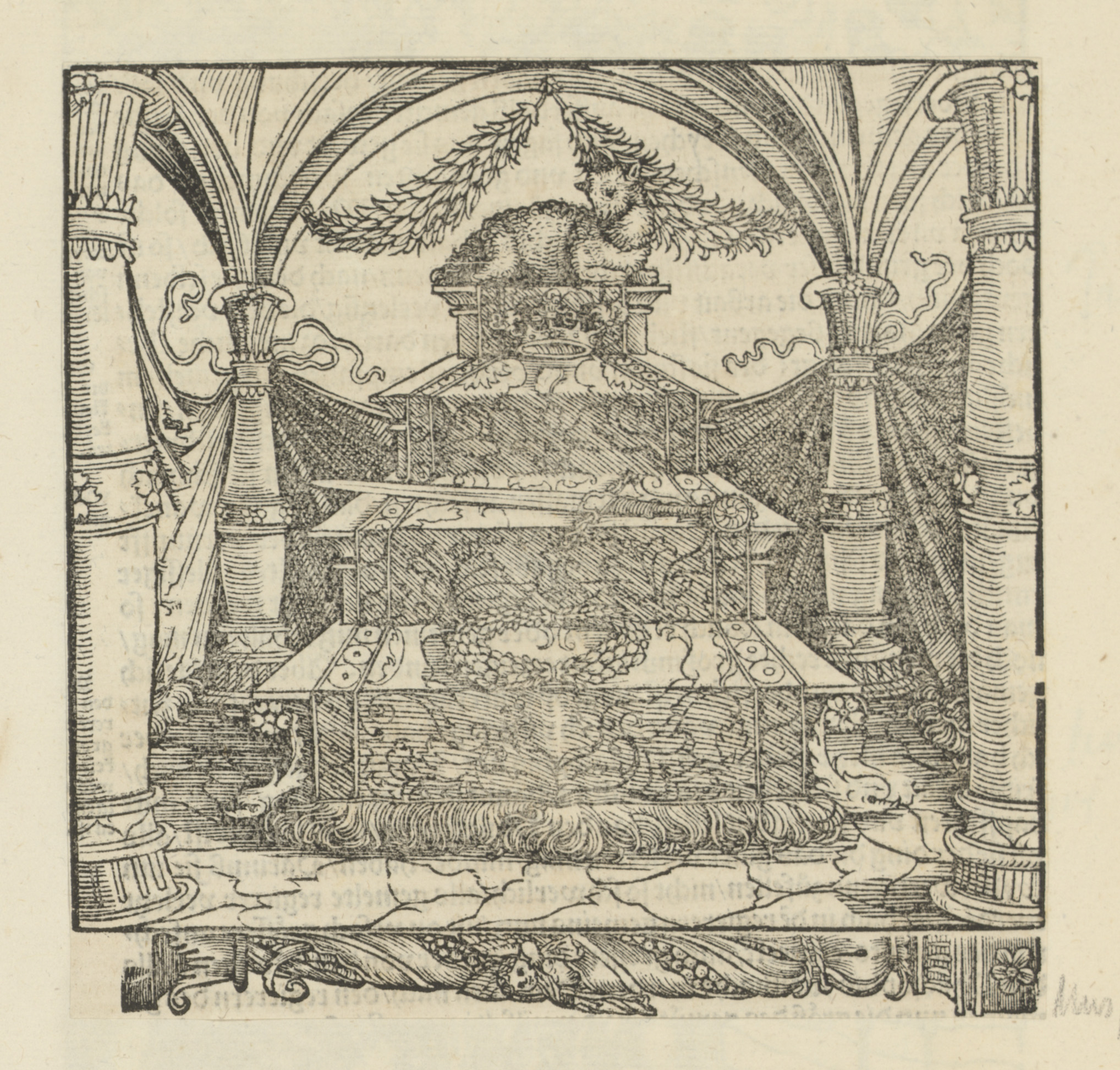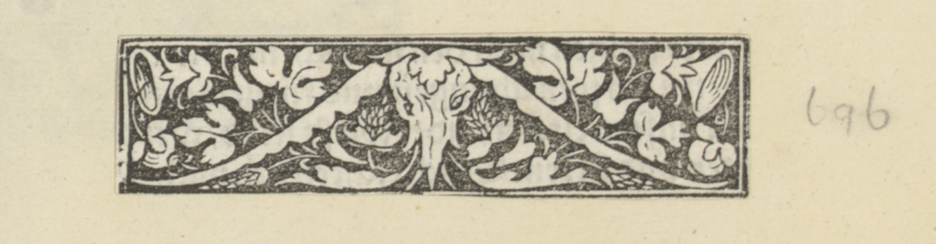 Schedel met hoorns en ornamenten met bladmotief