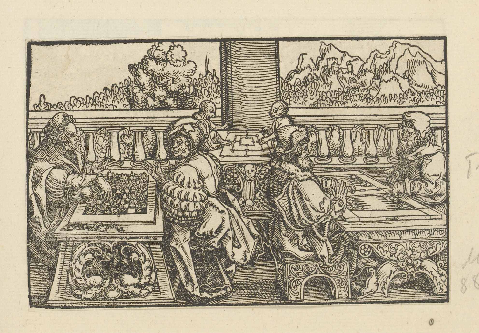 Uitgedost gezelschap op een balkon