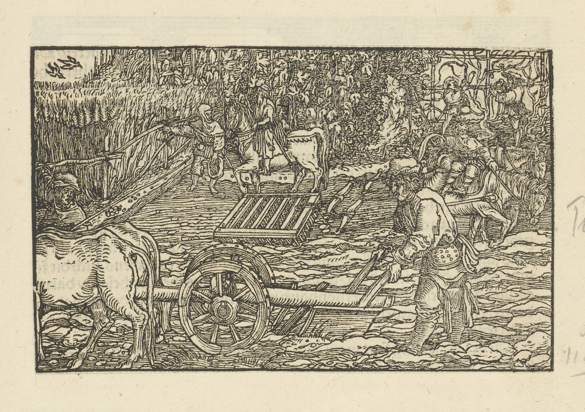 Twee ploegers en andere landarbeiders