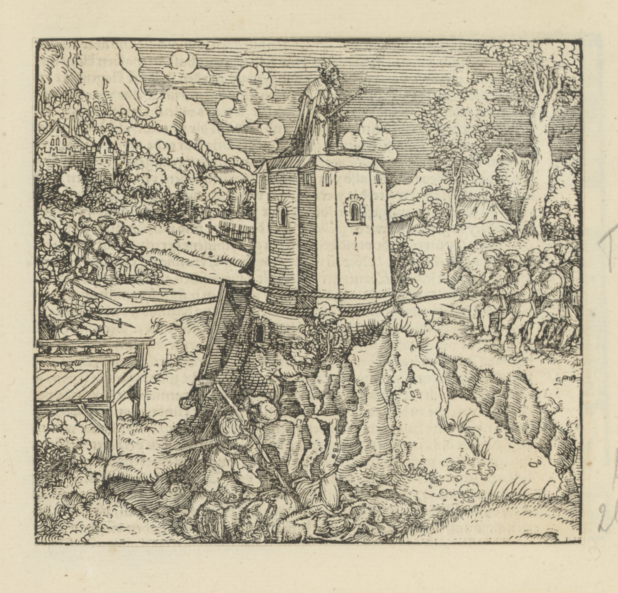Heerser op een toren waar van twee kanten aan getrok...