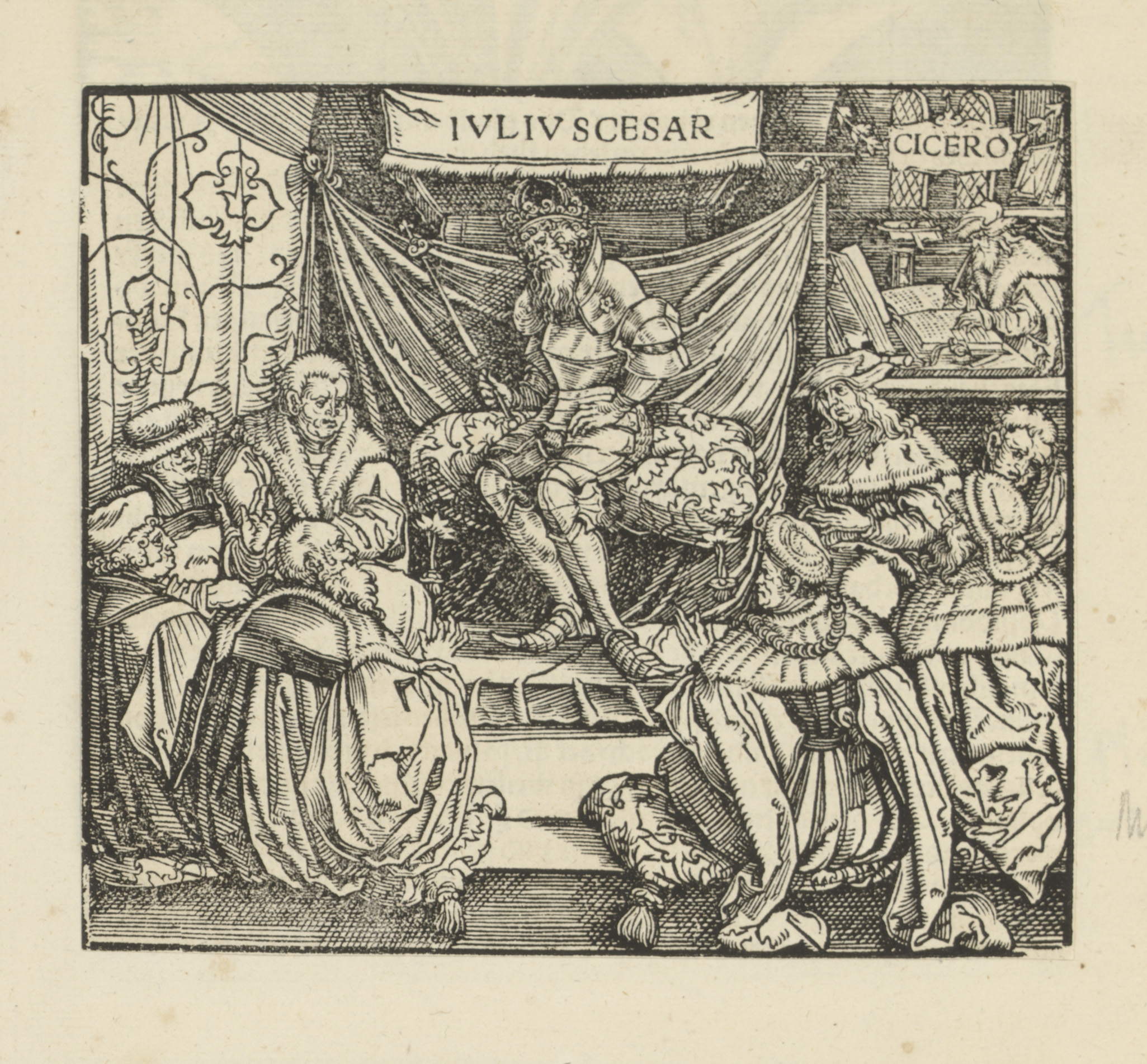 Julius Caesar in een raadsvergadering en Cicero schr...