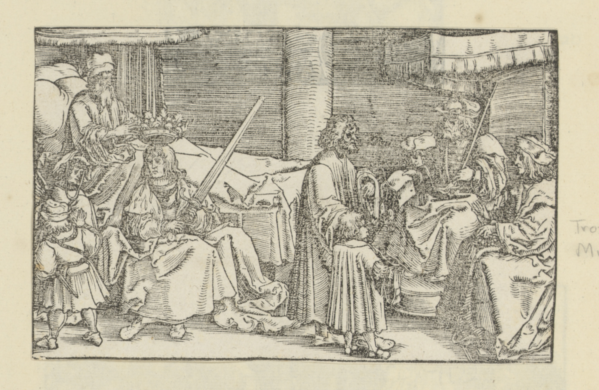Odysseus als nar verkleed en zijn troepen bij een st...