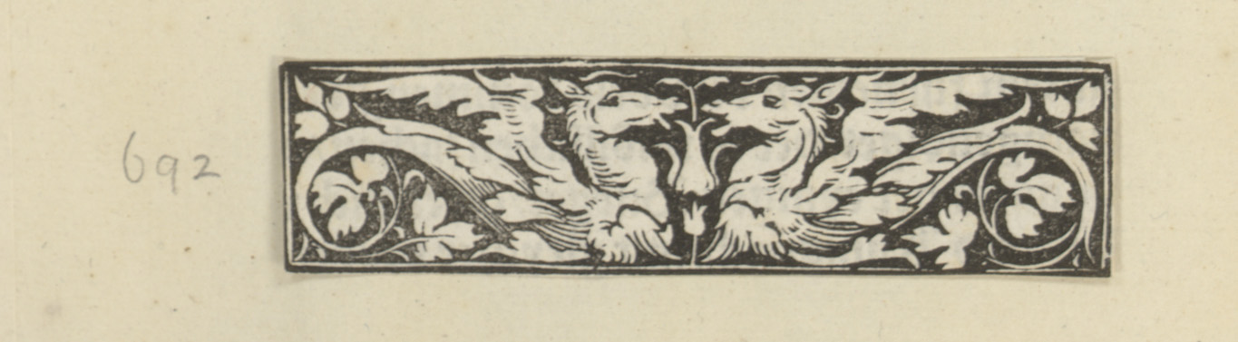 Twee gevleugelde fabeldieren met paardenhoofden en o...