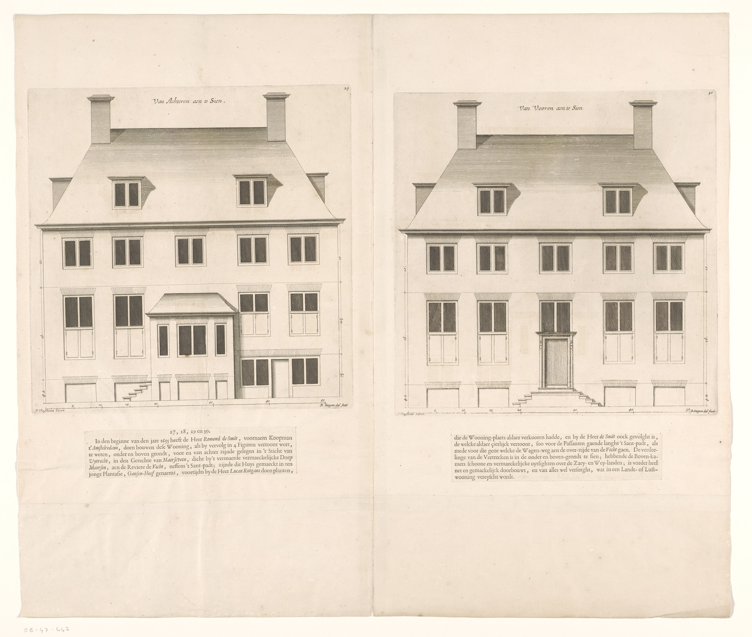 Zij- en vooraanzicht van huis Gansenhoef te Maarssen