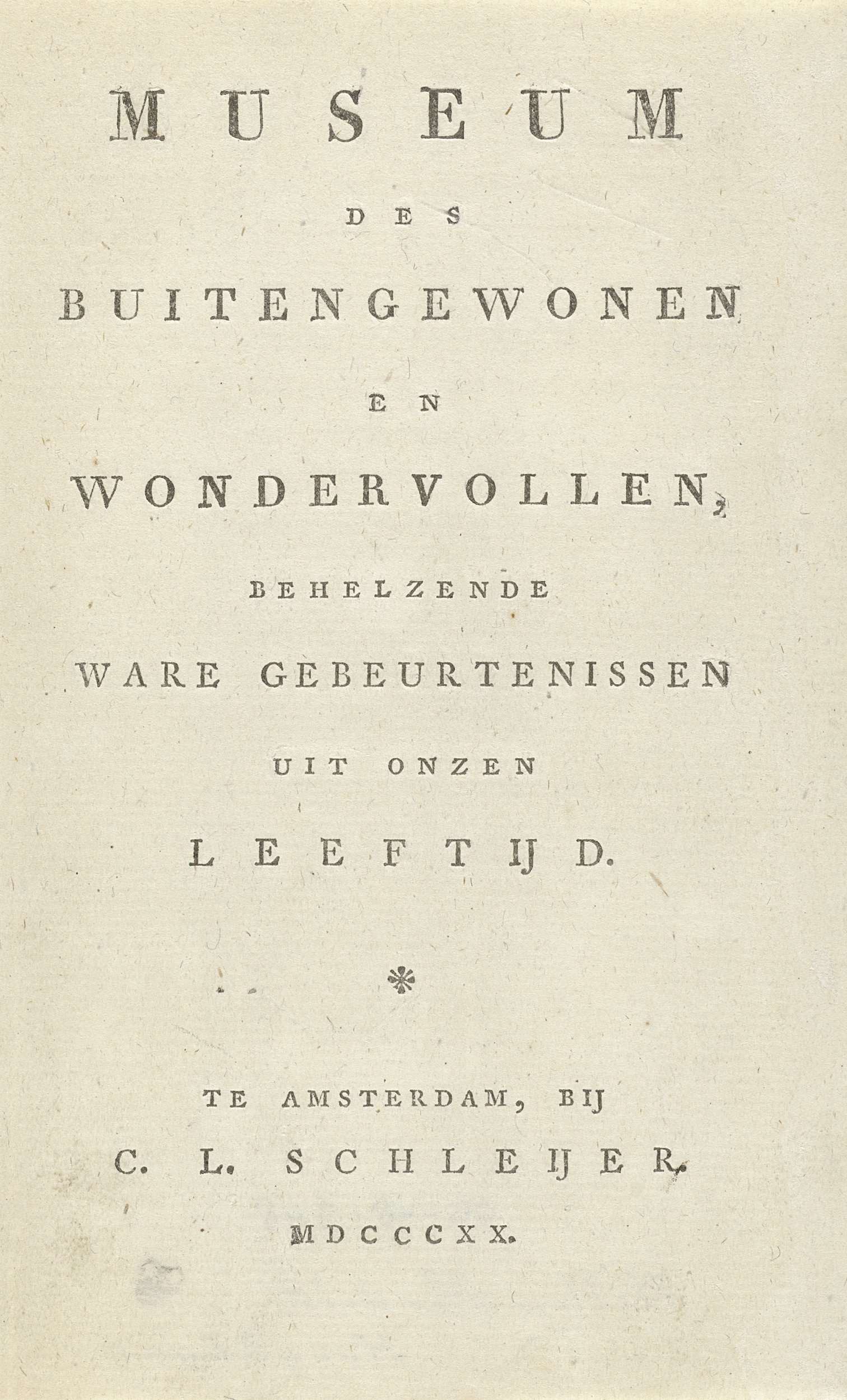 Titelpagina voor: Museum des buitengewonen en Wonder...