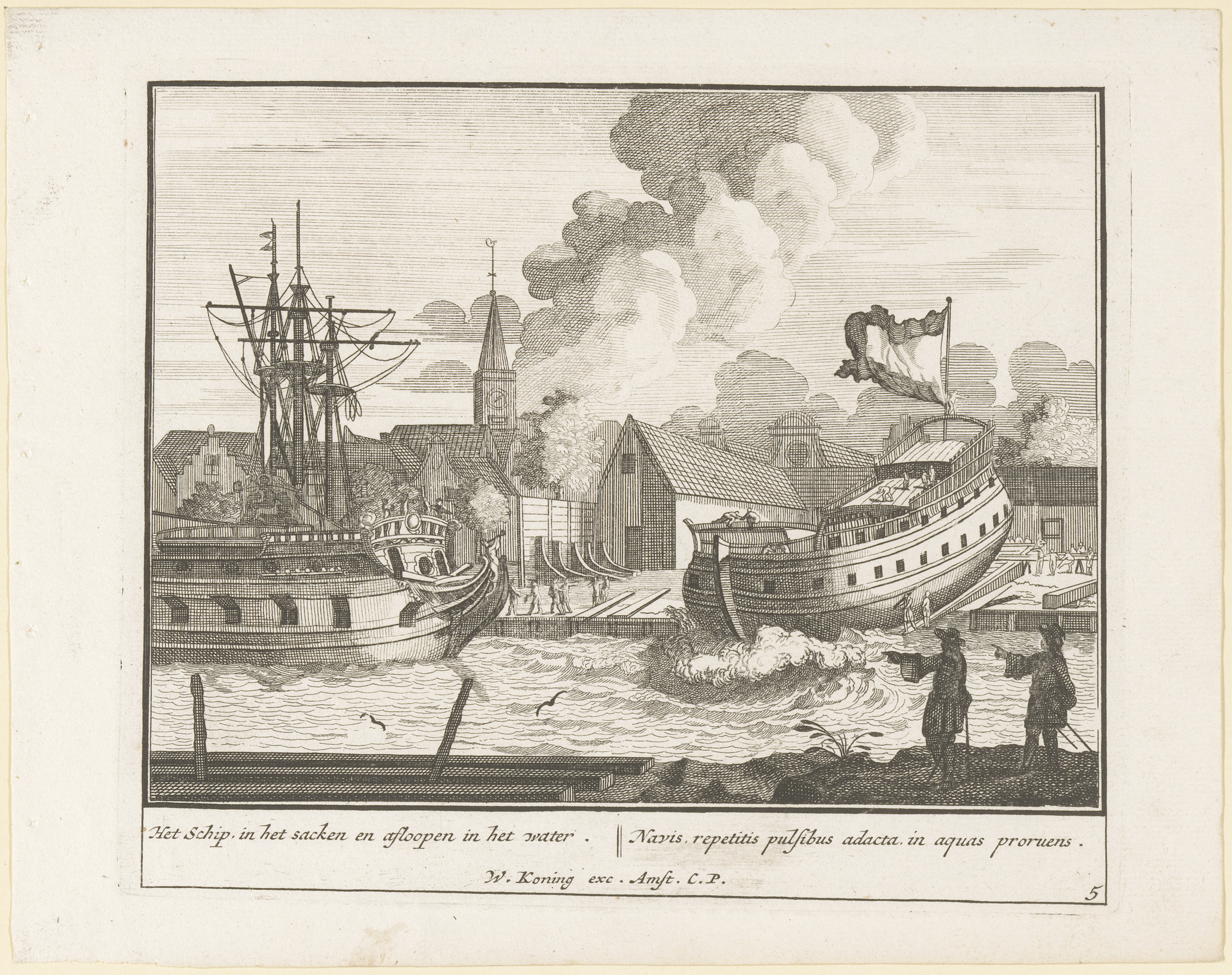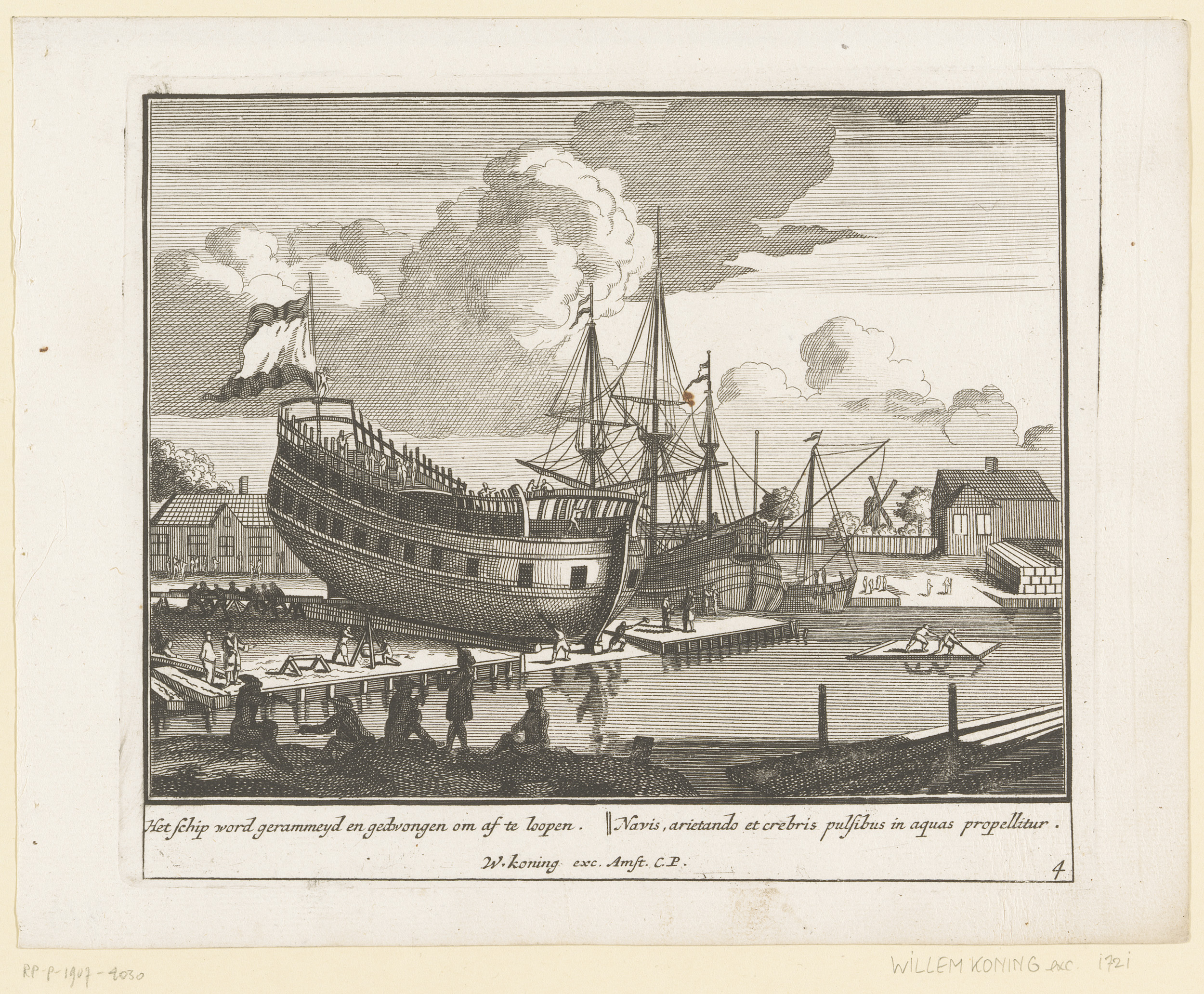 Schip wordt gekeerd om de bodem te breeuwen en harpu...