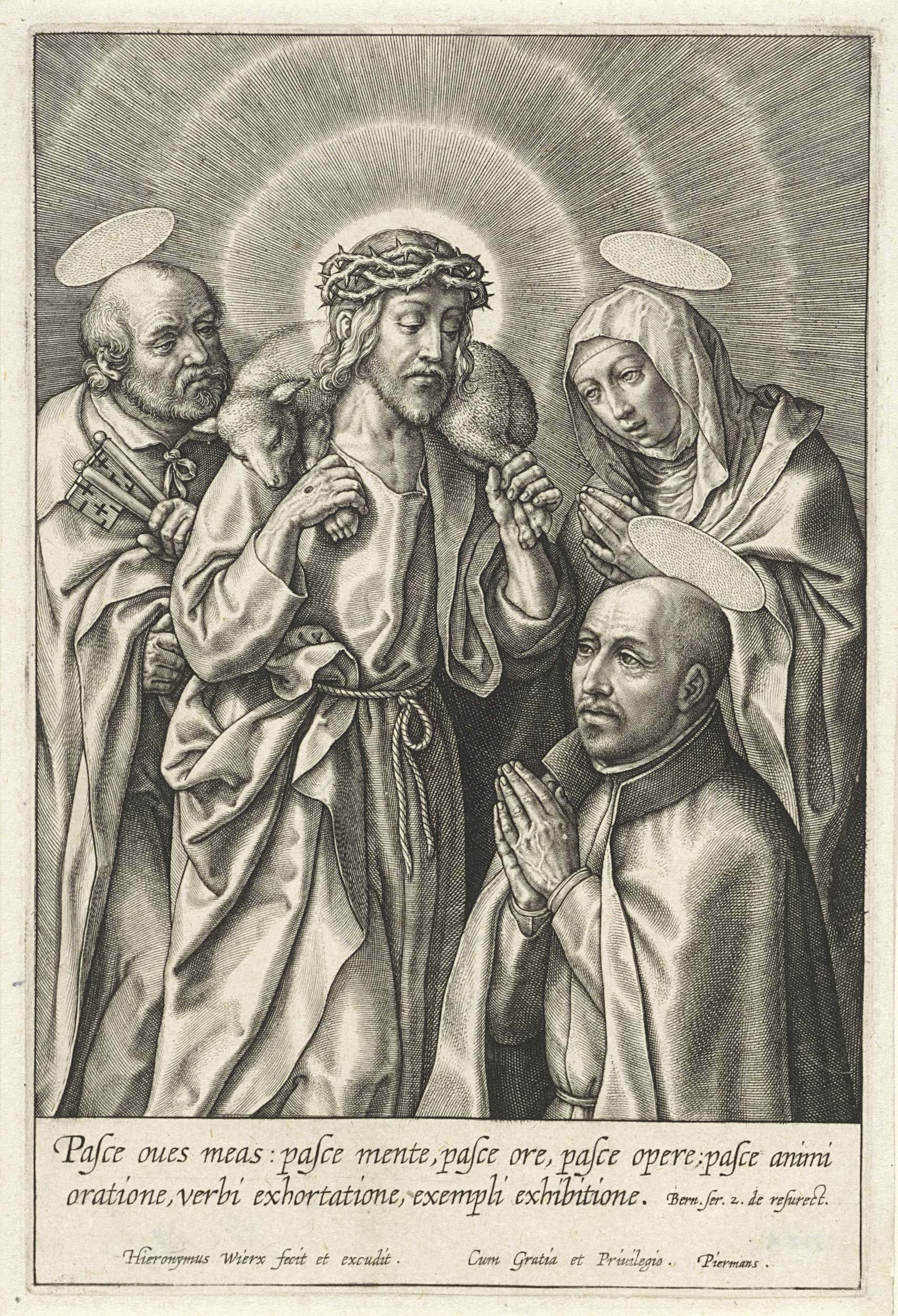 Ignatius van Loyola knielt voor Christus als de Goed...