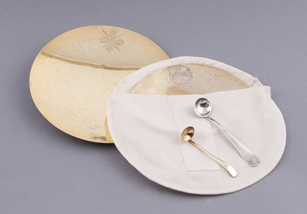 Pateen met lepeltje in linnen foudraal, 1e helft 20e...