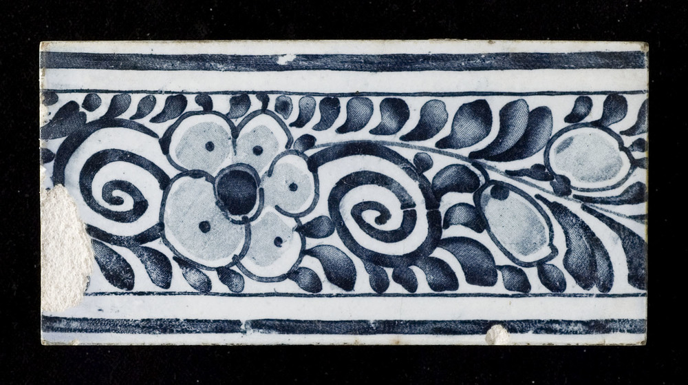 Randtegel in transfer-techniek, met voorstelling: bl...