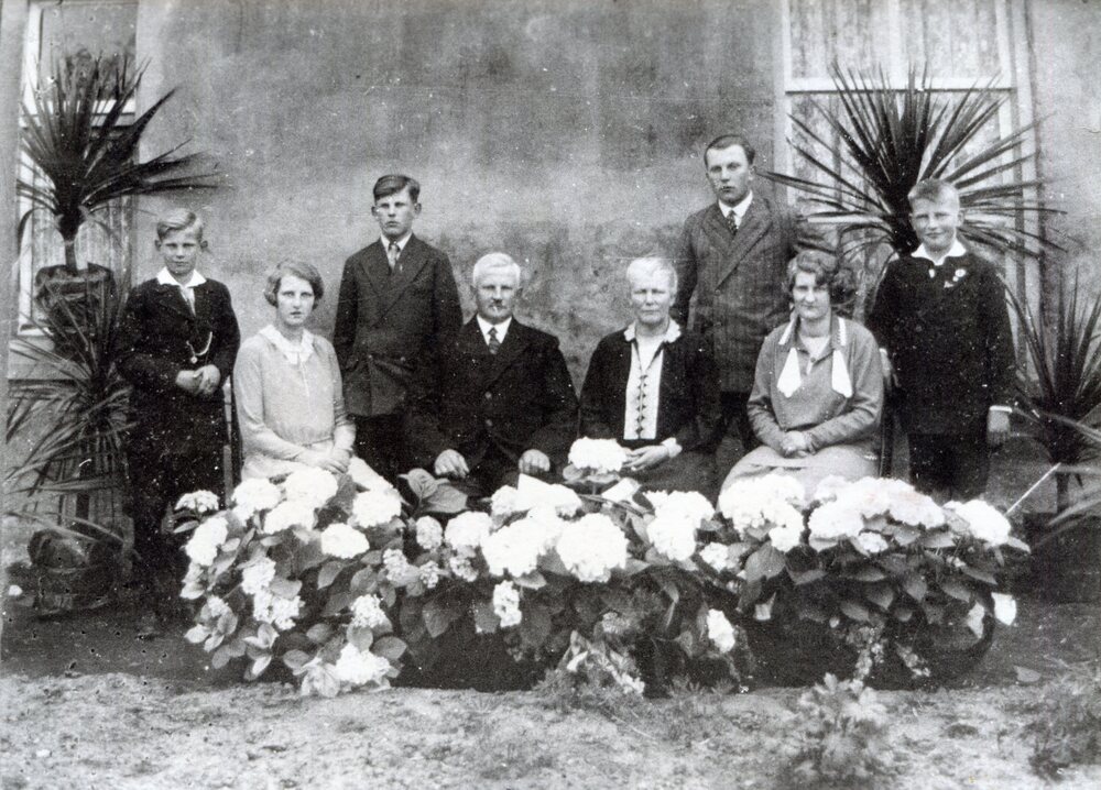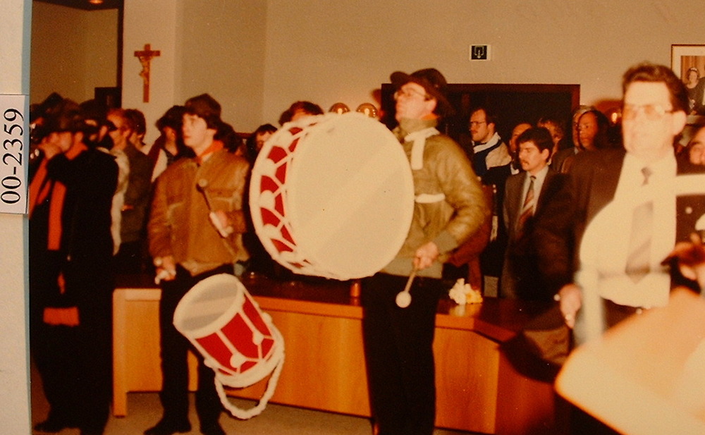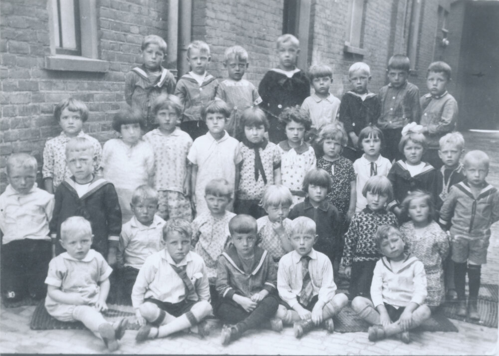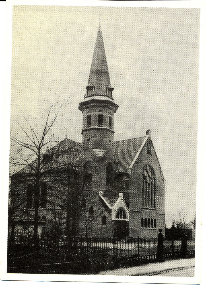 Zwart-wit foto van een kerkdienst in de Sint Martinu...