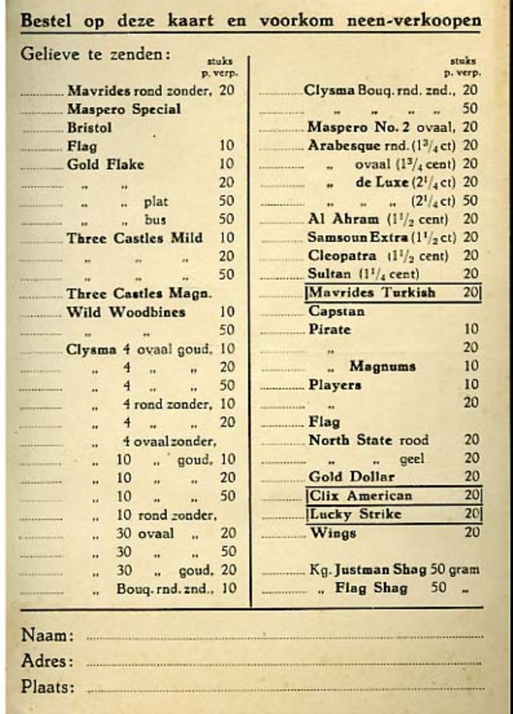 Aanvraagformulier 'Bestelkaart van British-American ...