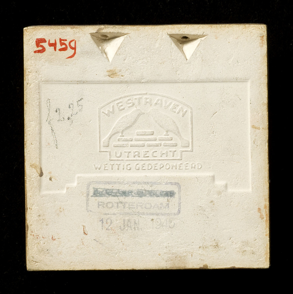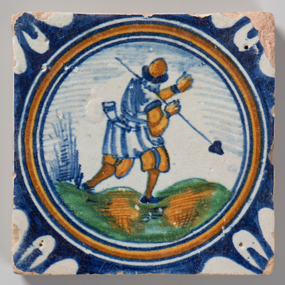 tegel van keramiek met tinglazuur, voorstellende: ja...