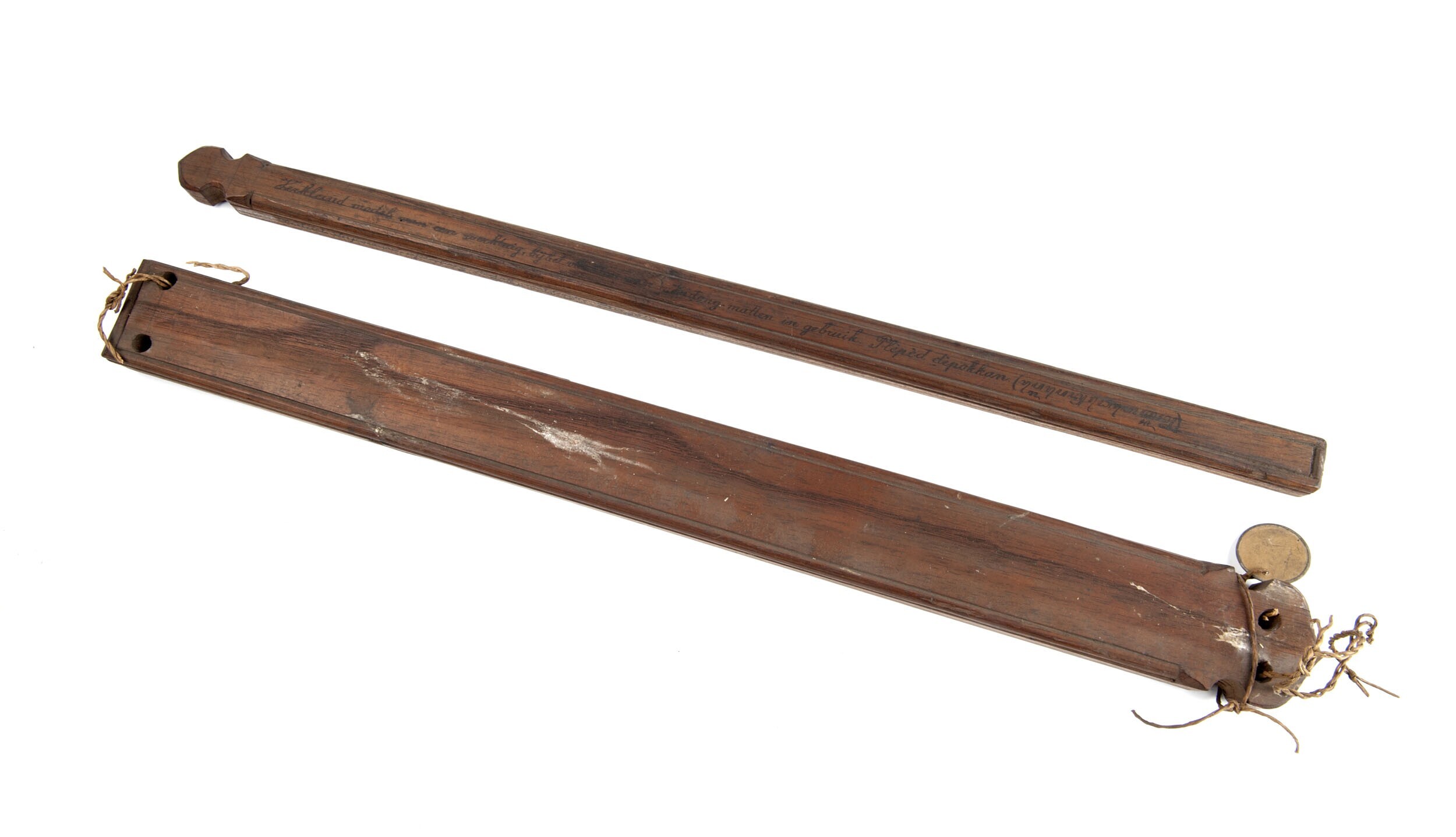 Kalkspatel van messing, onderdeel van een sirihdoos