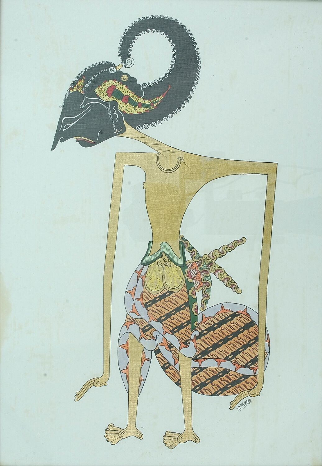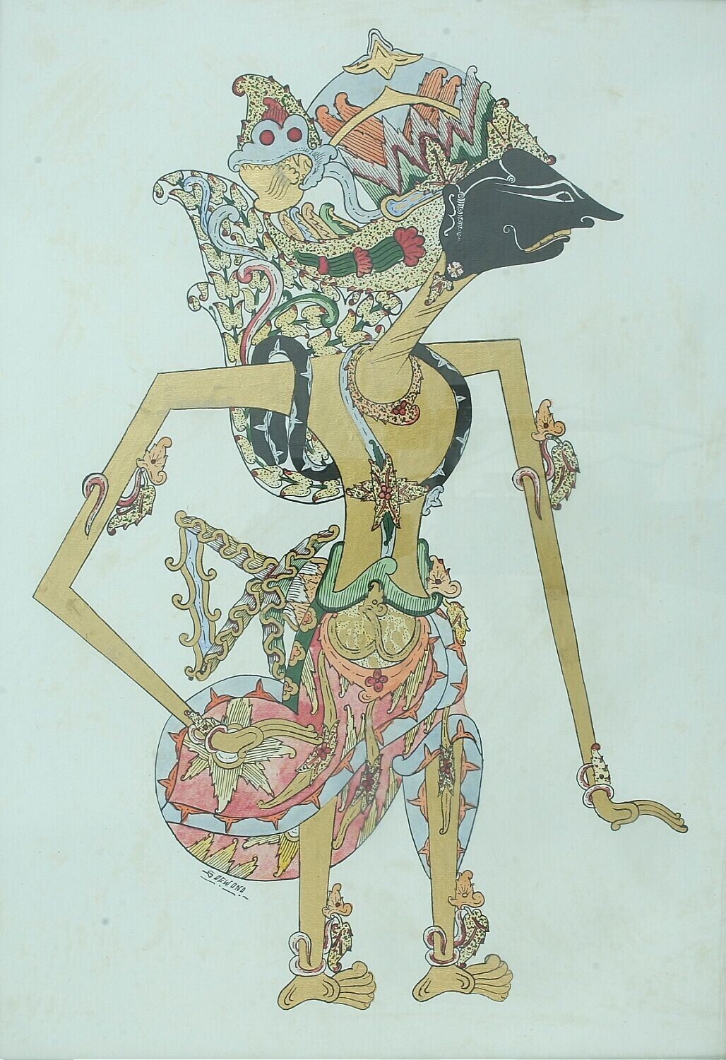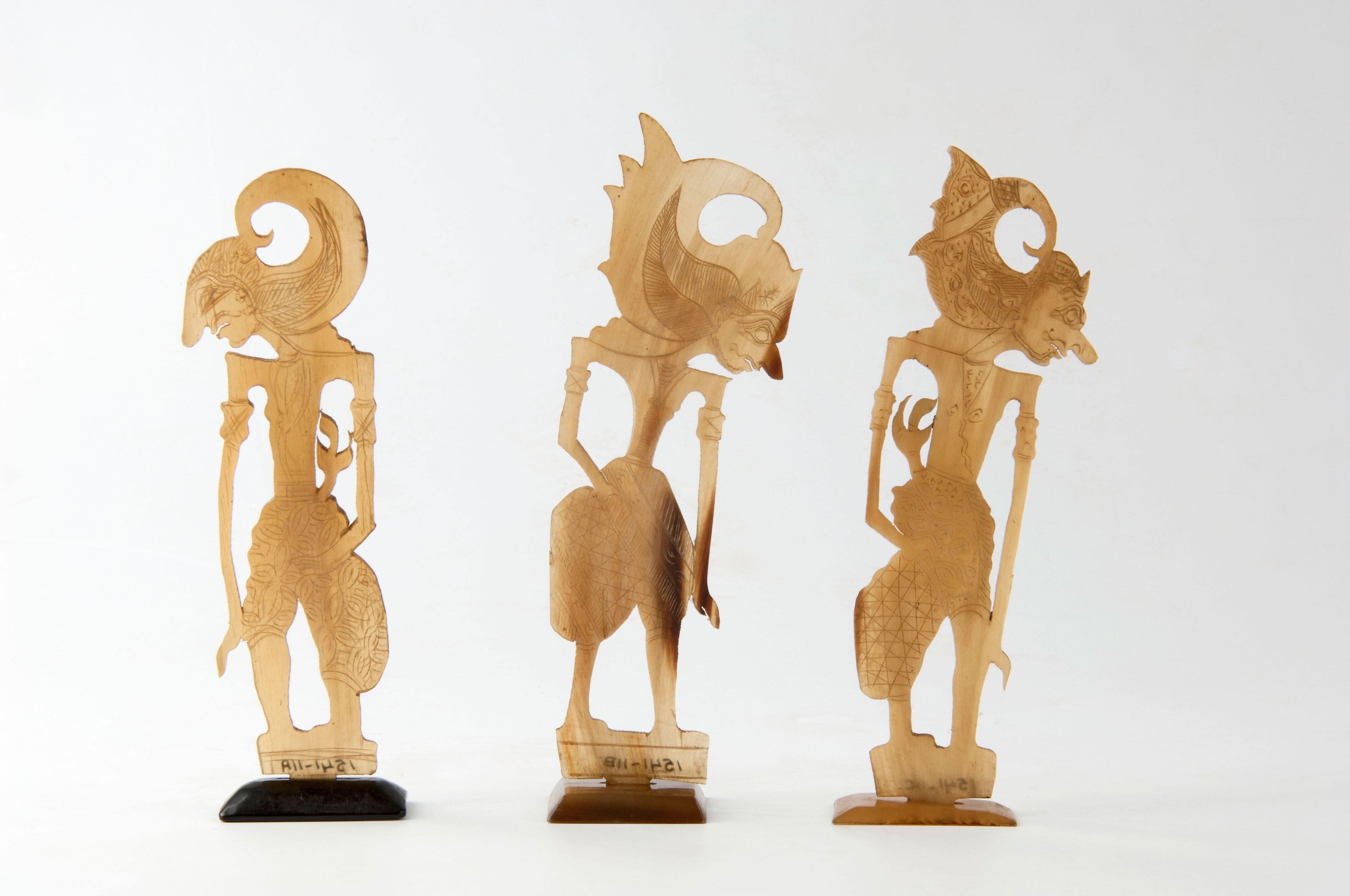 Schildpad wayangfiguur op zwart hoornen voetstuk
