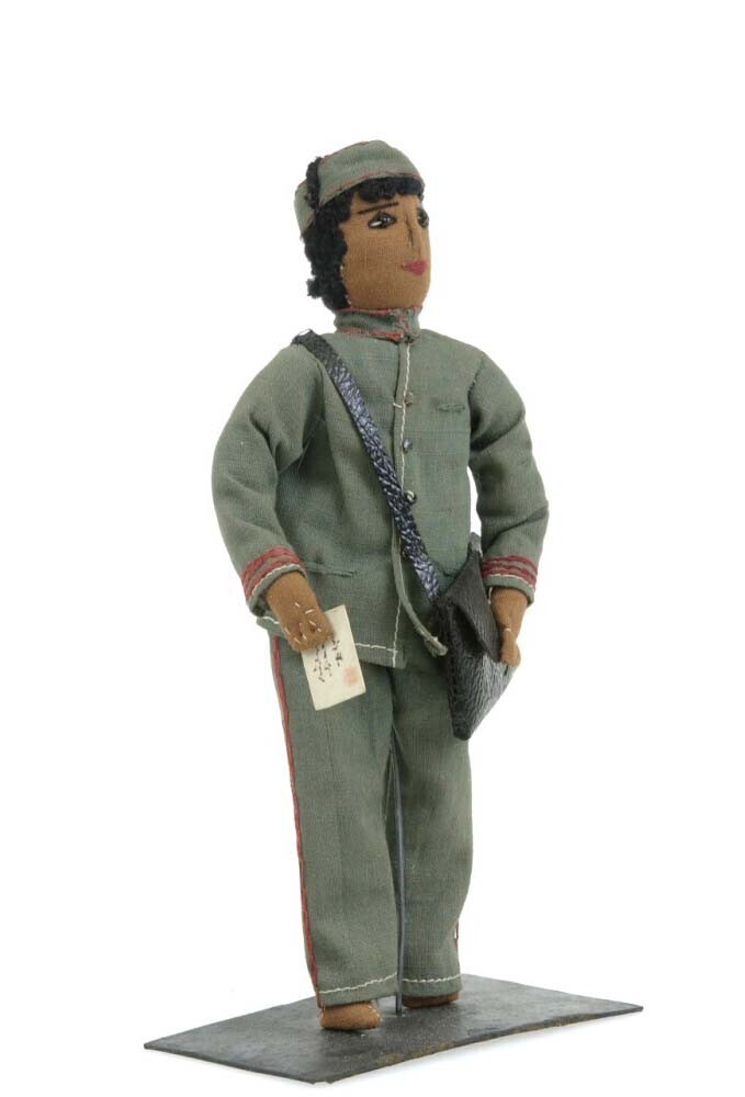 Katoenen pop, brievenbesteller voorstellend (oppas p...