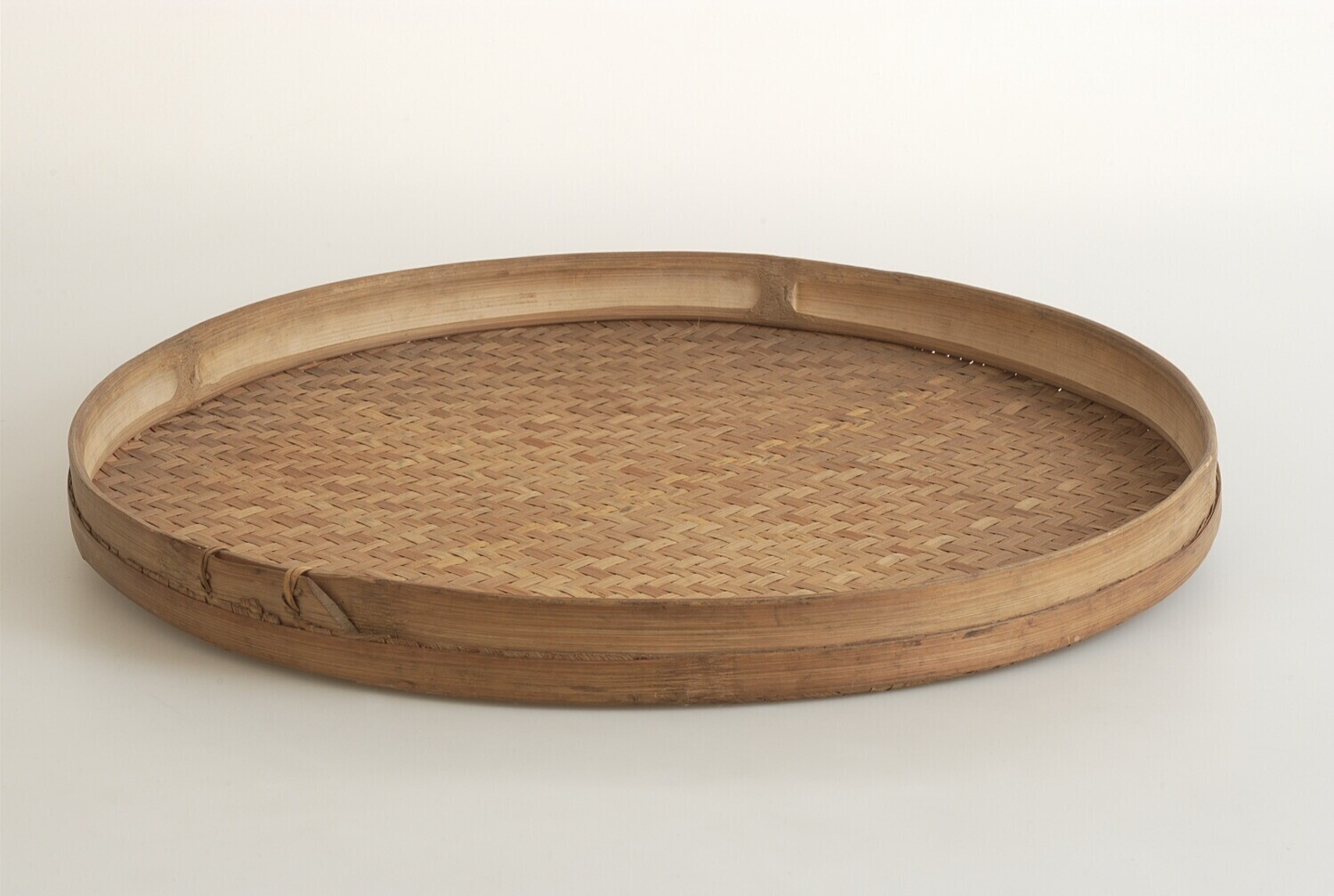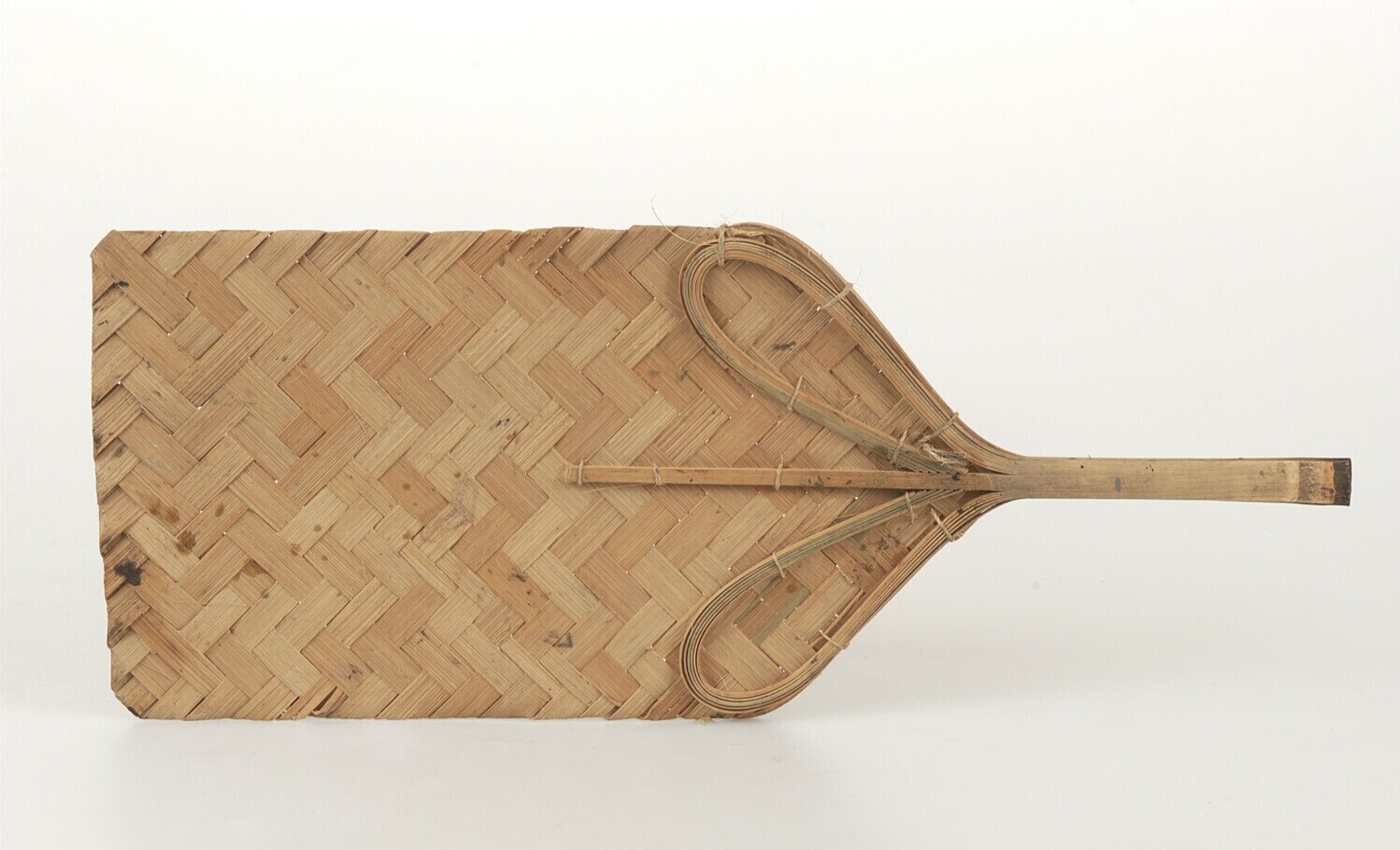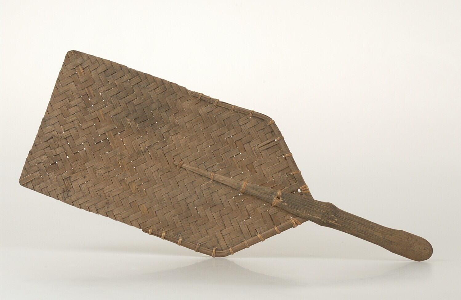 Vuurwaaier van gevlochten bamboe met bamboe handvat