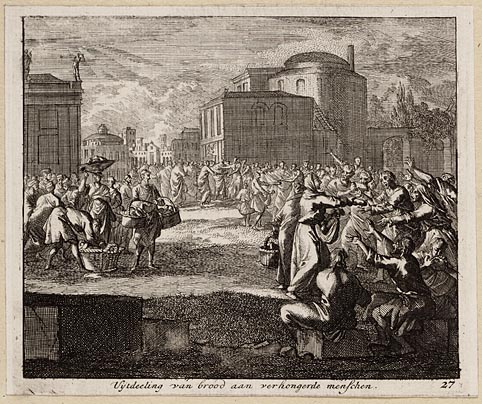 Uijtdeeling van brood aan verhongerde menschen