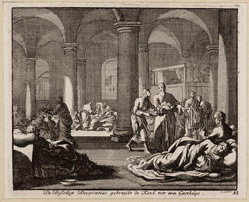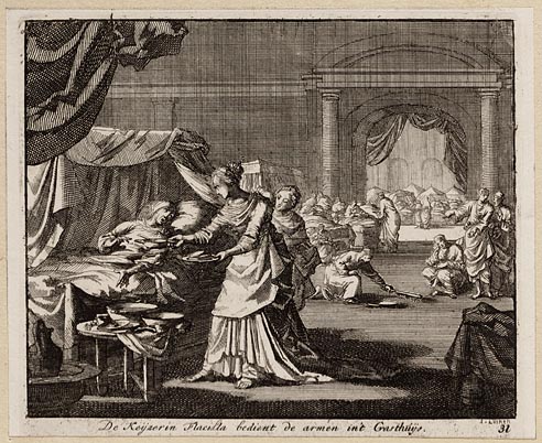 De keijzerin Flacilla bedient de armen in ´t gasthuijs