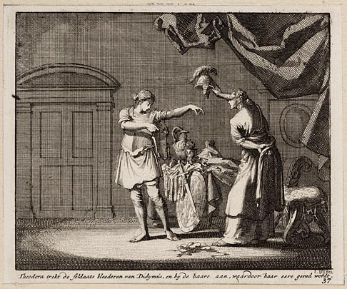 Theodora trekt de soldaats kleederen van Didymus, en...