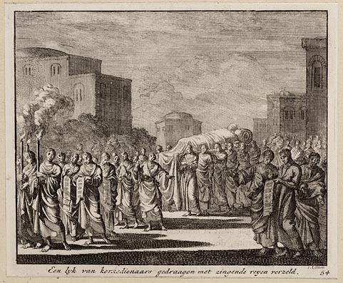 Een lyk van kerkdienaars gedraagen met zingende reye...