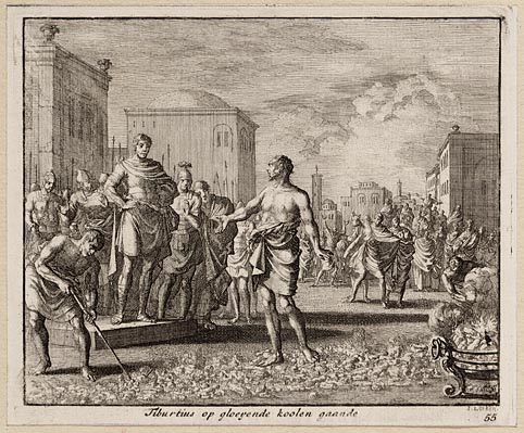 Tiburtius op gloeyende koolen gaande