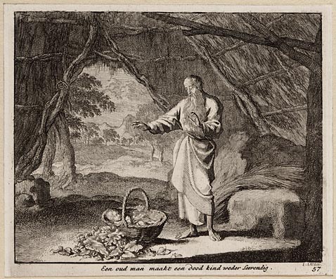 Een oud man maakt een dood kind weder leevendig