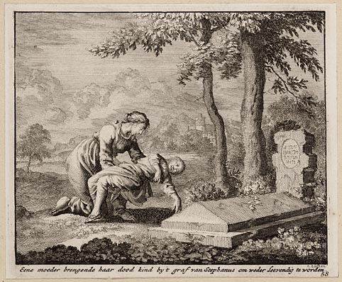 Eene moeder brengende haar dood kind by ´t graf van ...