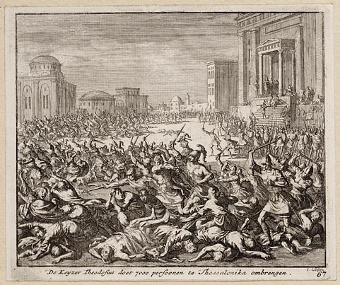 De keyzer Theodosius doet 7000 persoonen te Thessalo...