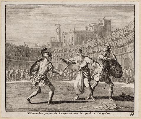 Telemachus poogt de kampvechters in ´t perk te scheyden