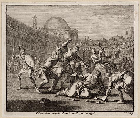 Telemachus wordt door ´t volk gesteenigd