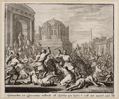Symmachus en Laurentius willende elk bisschop zyn, h...