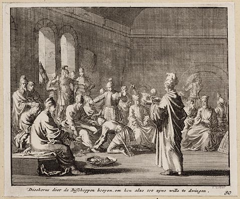 Dioskorus doet de bisschoppen boeyen, om hen alzo to...
