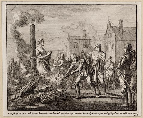 Een jongvrouw als eene ketterin verbrand om dat zy e...