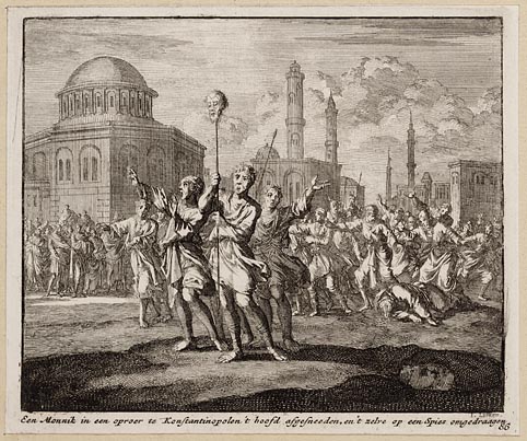 Een monnik in een oproer te Konstantinopolen ´t hoof...