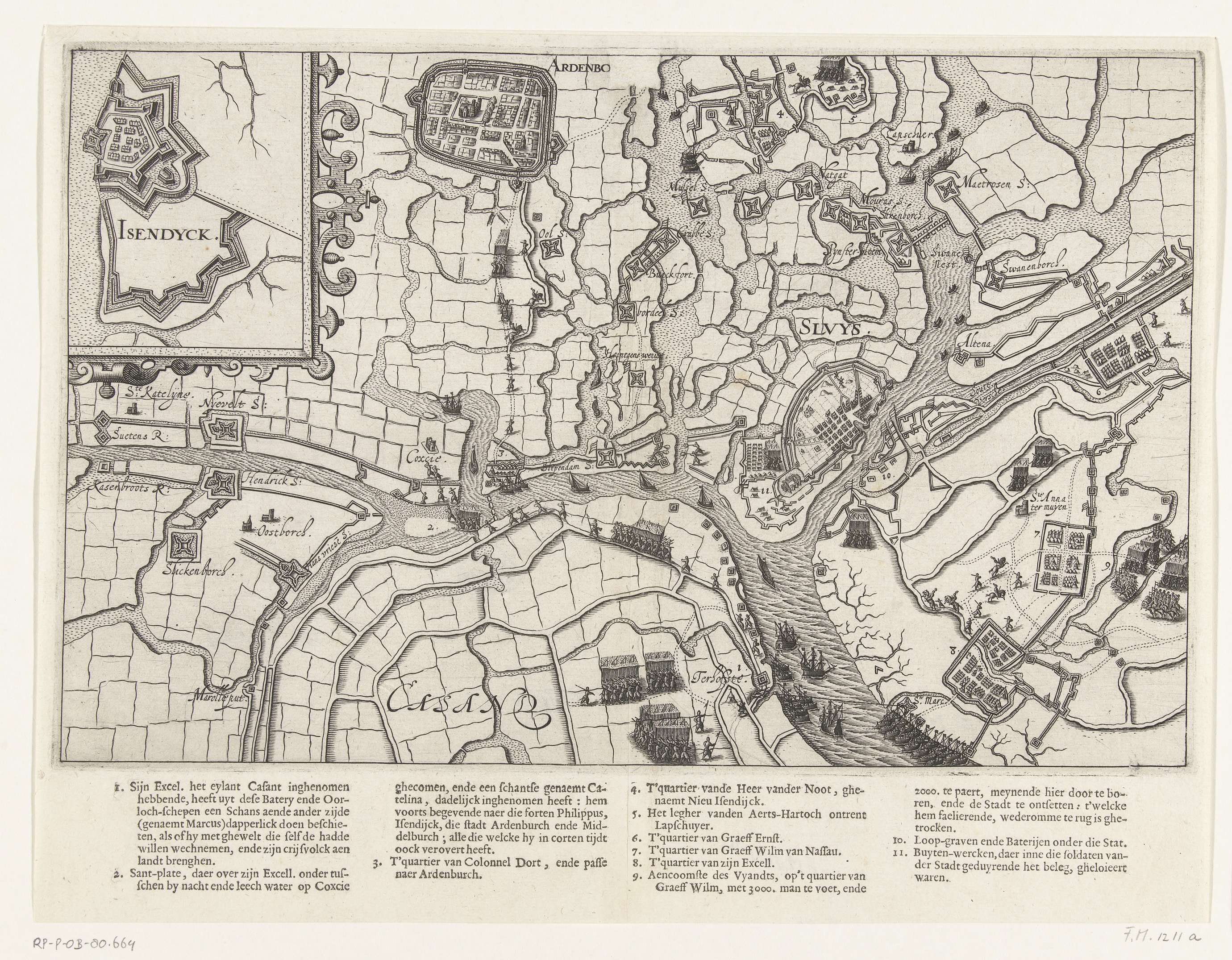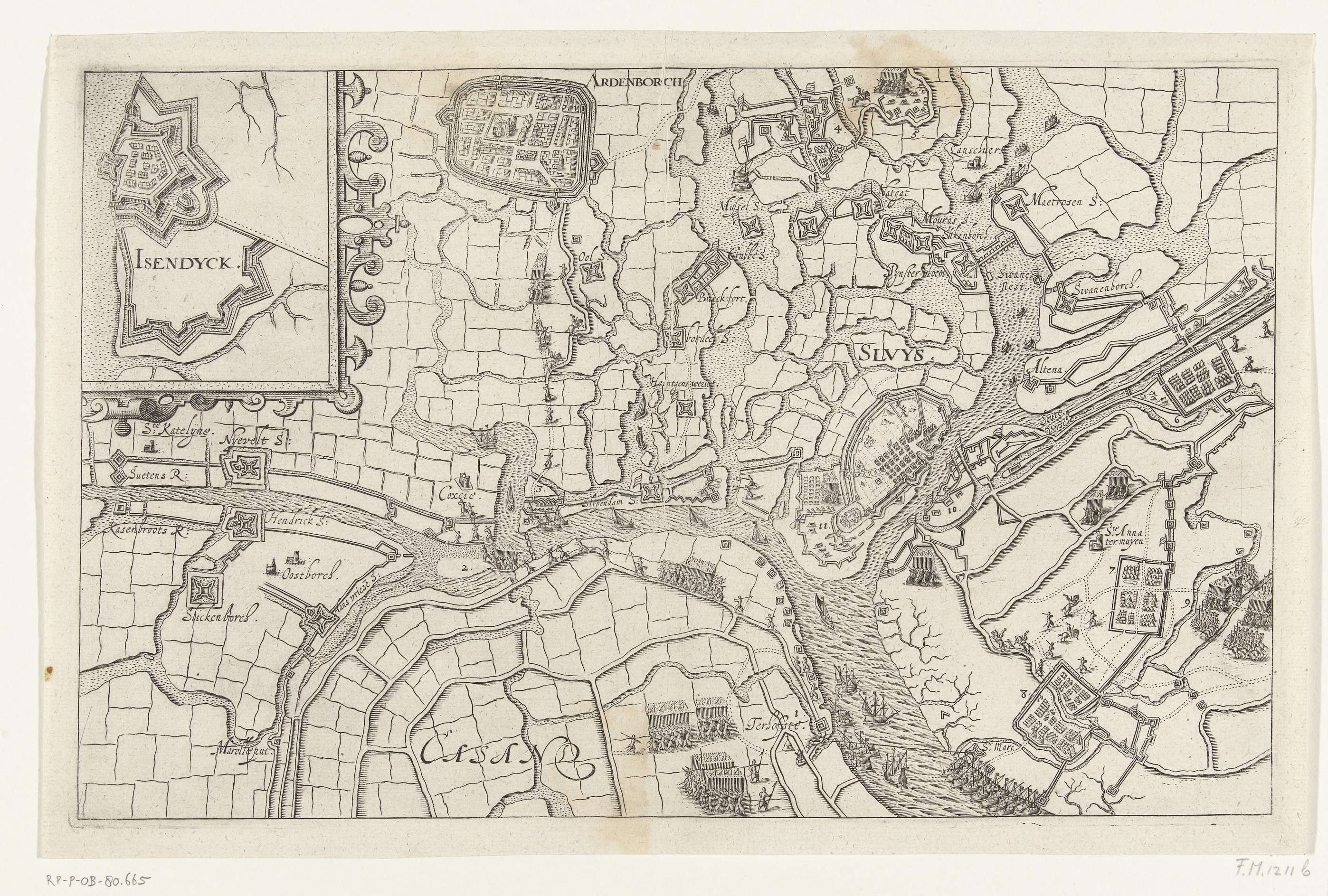 Kaart van het door Maurits belegerde Sluis, 1604