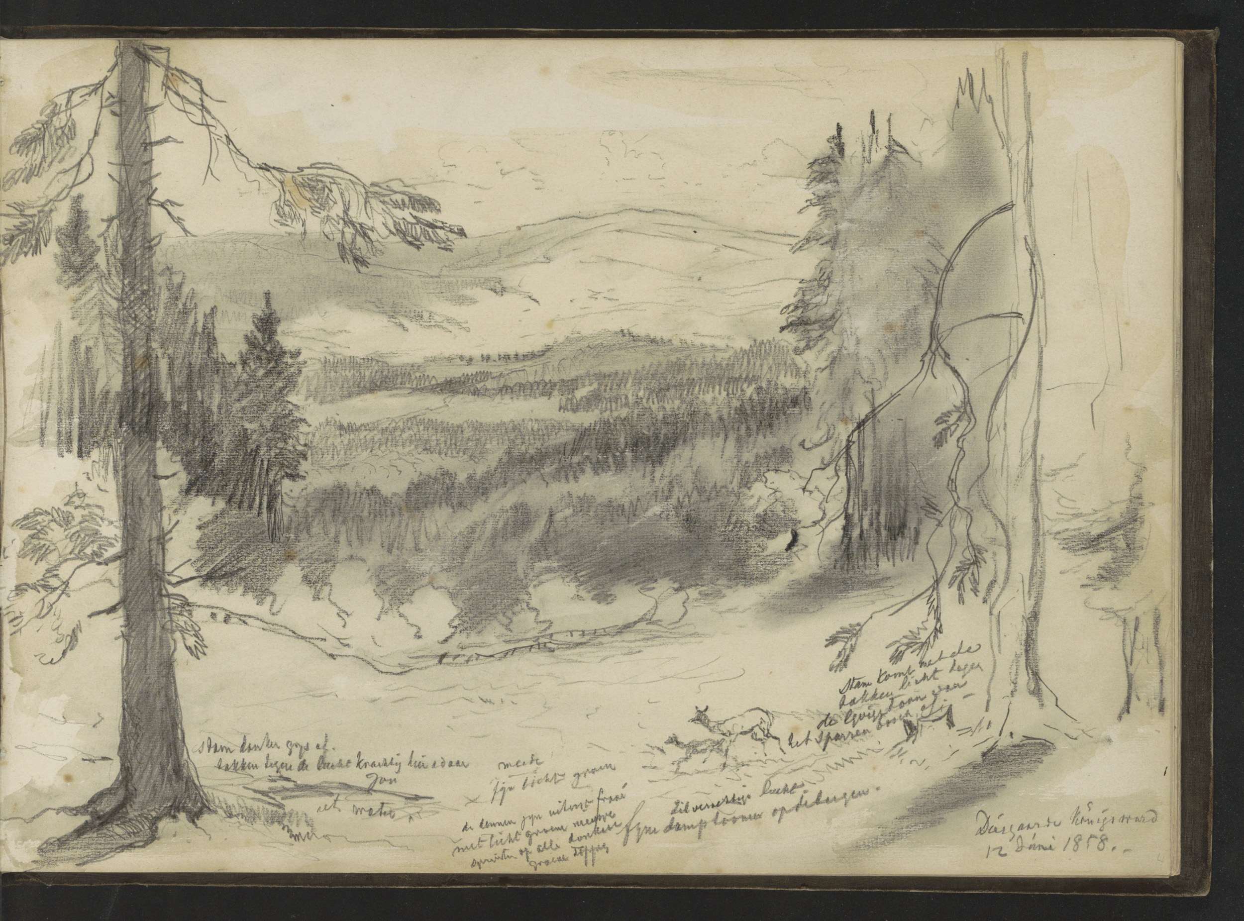 Berglandschap met herten in Bohemen