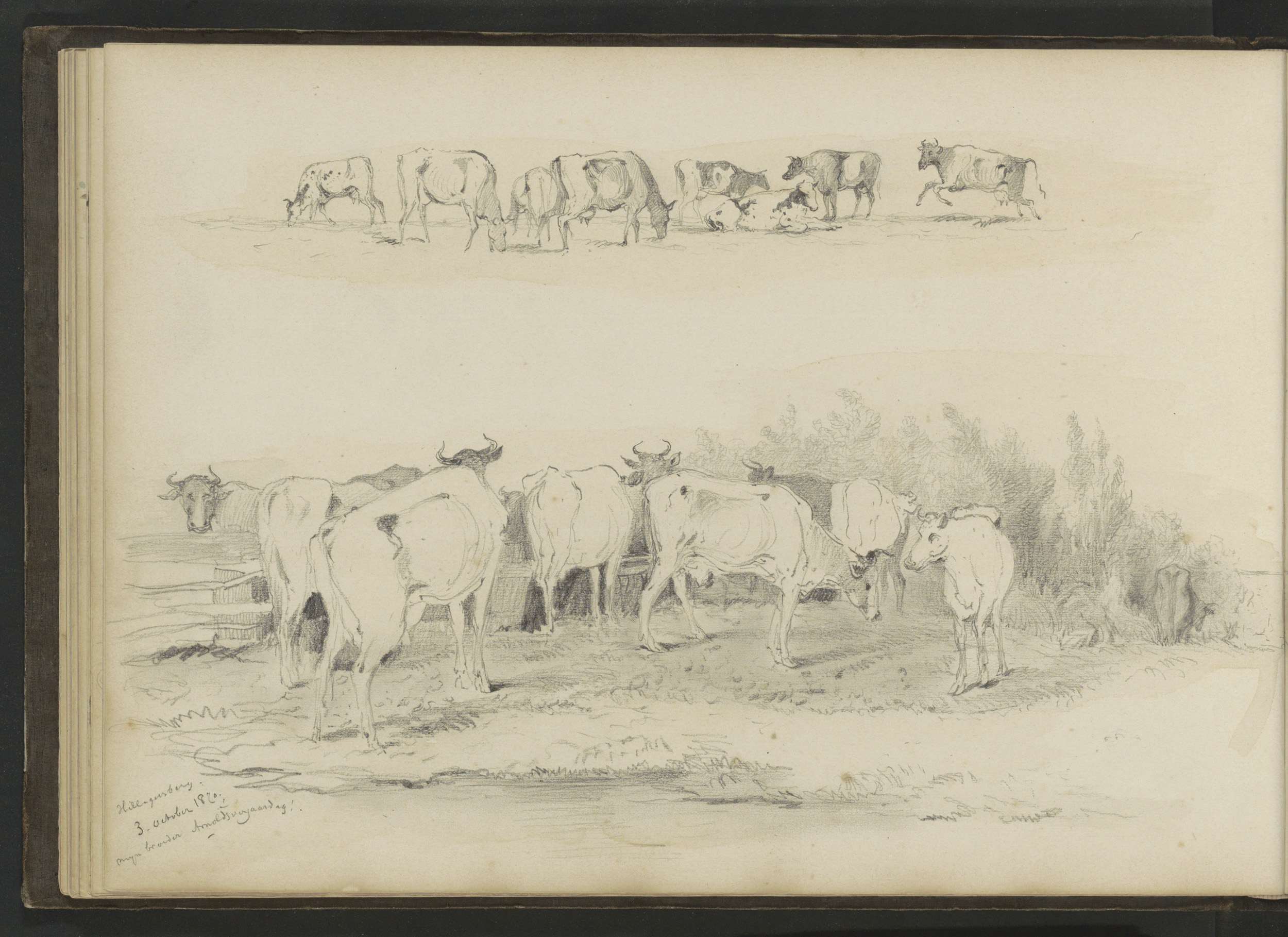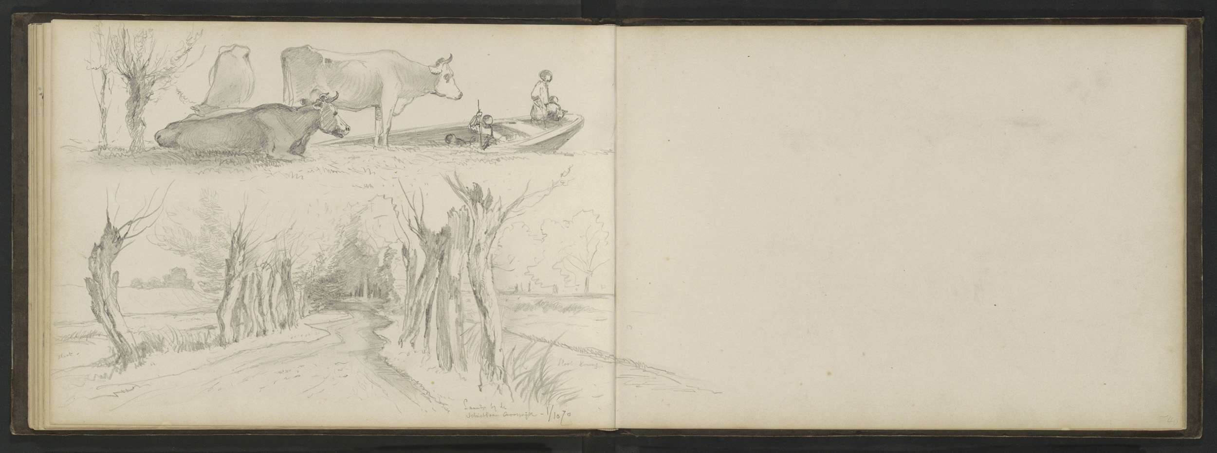 Koeien in een weiland en een laan bij de schietbaan ...